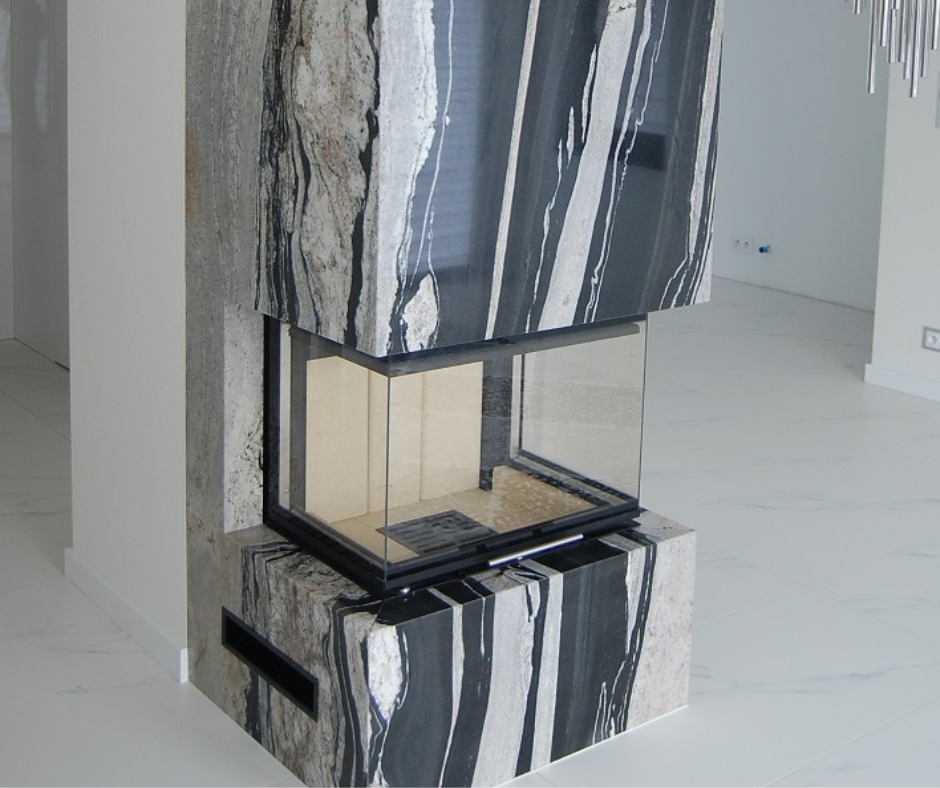 Kominek z zabudowa kamieniem nero