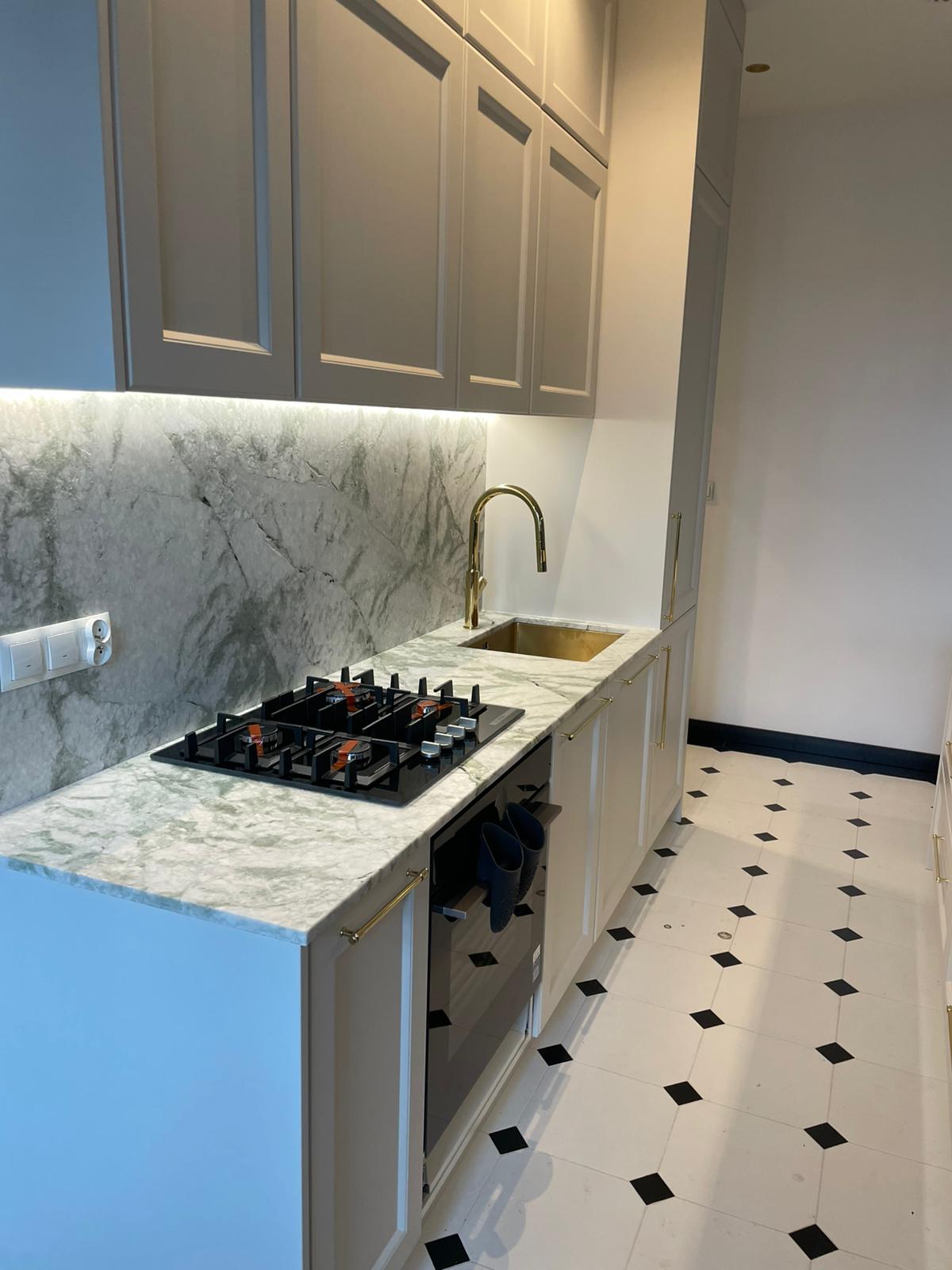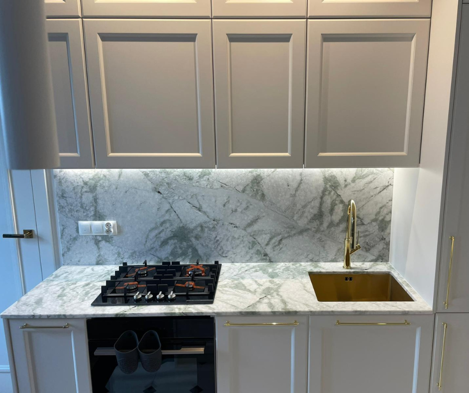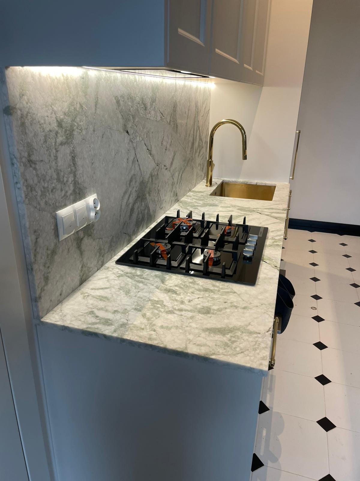 Wyspa kuchenna z konglomeratu Crystal Calacatta Silvia