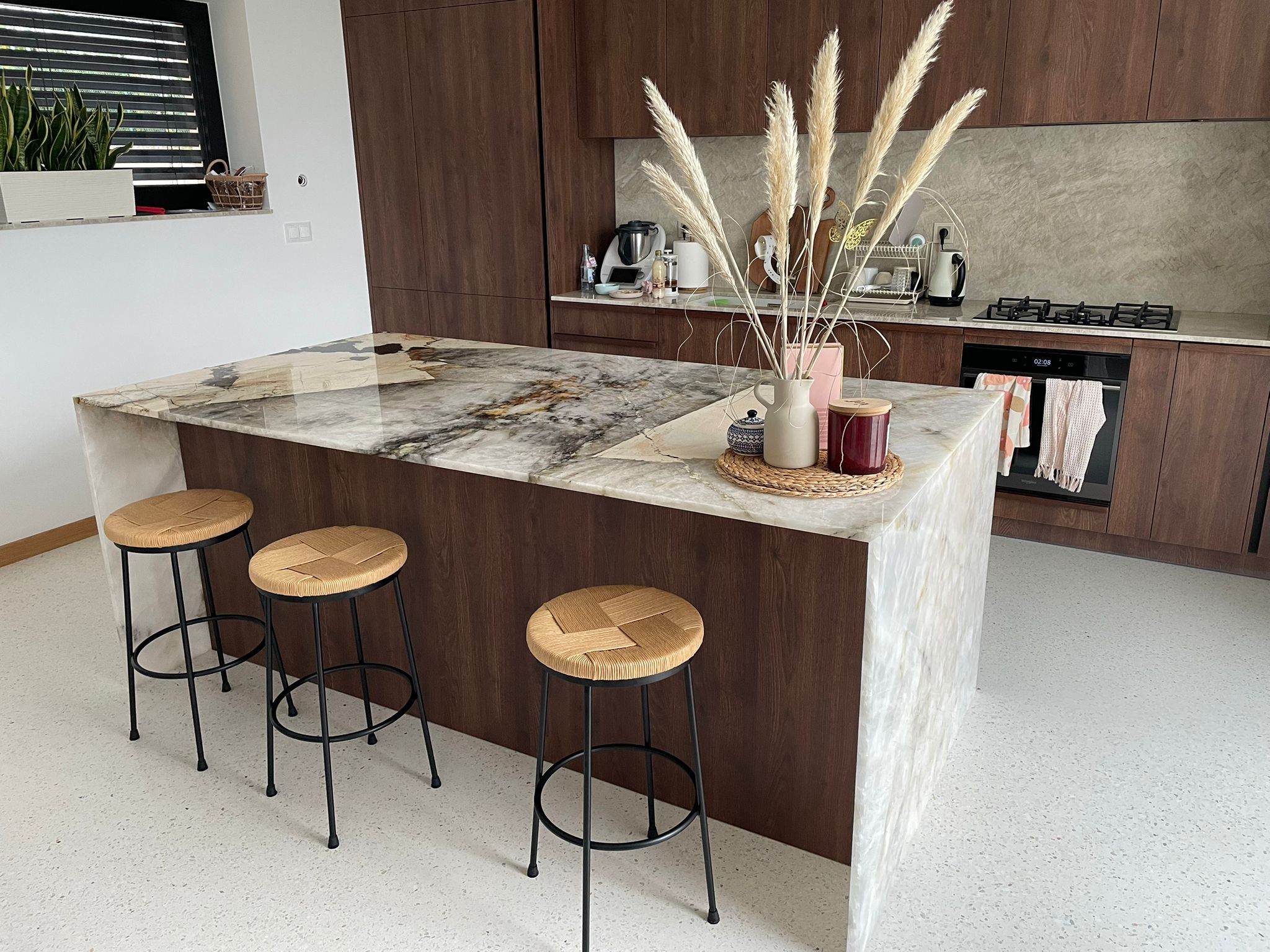Ekspozycja kamieni naturalnych, kwarcytów, spieków kwarcowych oraz konglomeratów znajduje się w salonie Bodzanów 460.